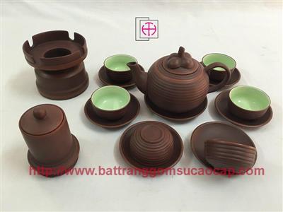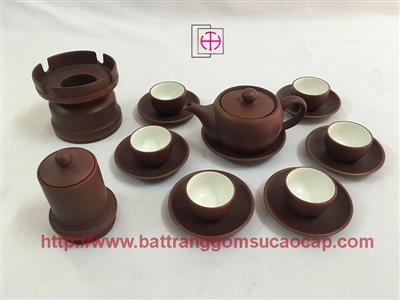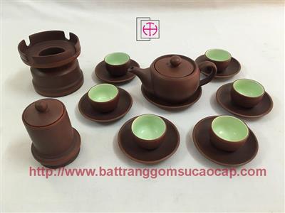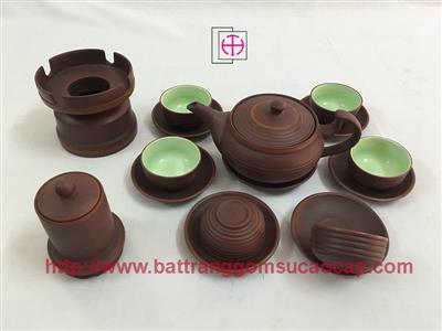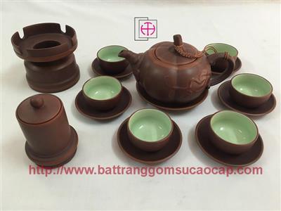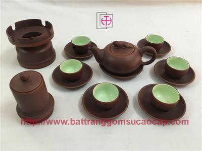Bộ ấm chuông quai đồng men mát trắng và xanh dương