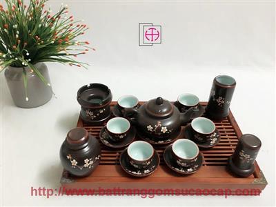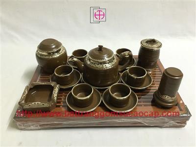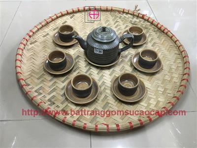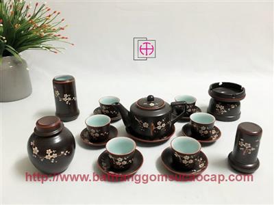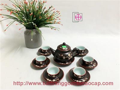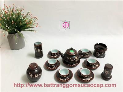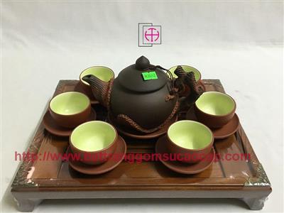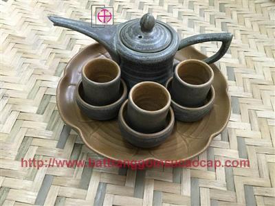 Bộ ấm chuông quai đồng men mát trắng và xanh dương